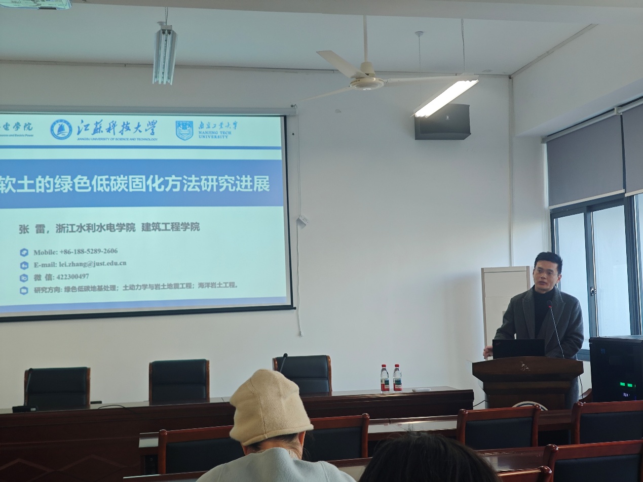 学院张雷副教授在《低渗透性软土的绿色低碳固化方法研究进展》报告中,针对沿海地区滩涂软土的工程难题,介绍了团队基于电渗联合技术的理论推导与试验研究。他强调,通过优化排水固结法与新型固化技术,可显著提升地基处理效率与承载力,为缓解土地资源紧张、实现低碳施工目标提供了创新思路。