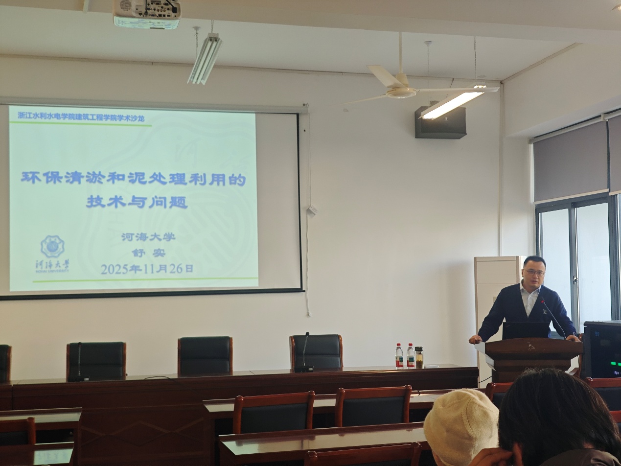 2025年11月26日,建筑工程学院“水韵建工”学术沙龙第五期在学院报告厅顺利举办。本期沙龙邀请三位青年学者围绕环境岩土工程、低碳地基处理及实验教学改革等热点领域展开分享和深入交流,会议由学术副院长宋杰主持,吸引了众多师生参与,现场学术氛围热烈。